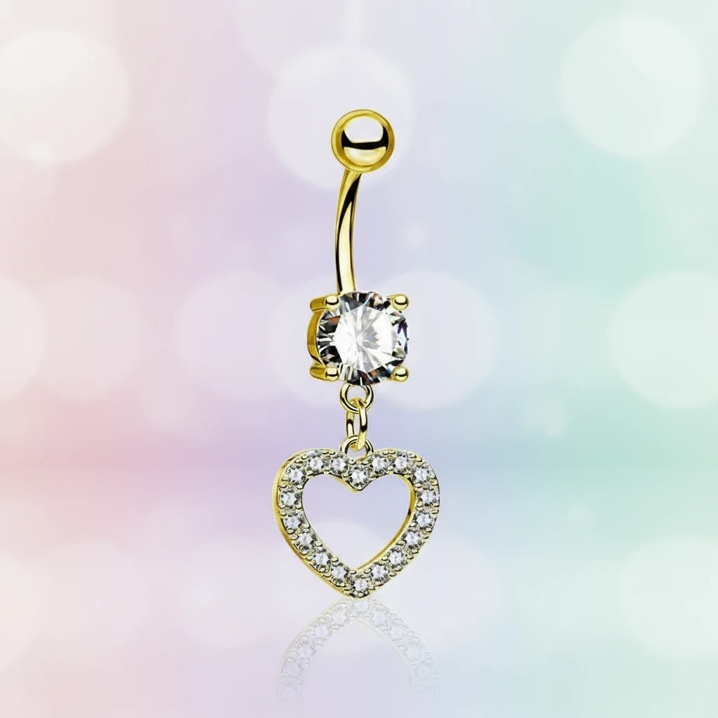 Heart Dangle Steel Navel