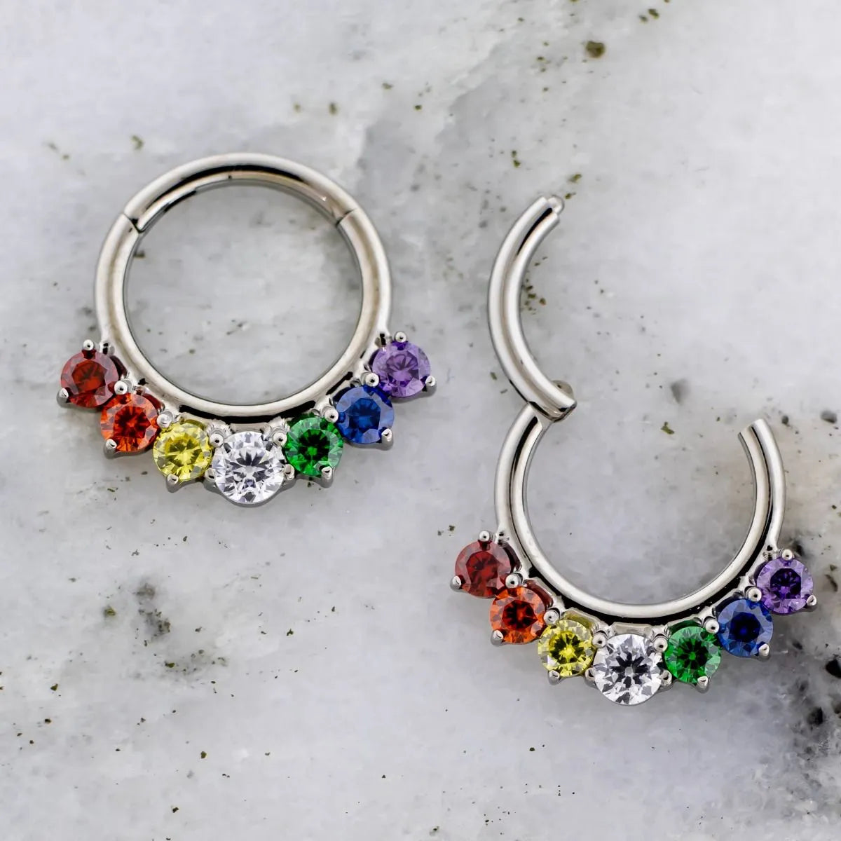 Titanium Hinged Segment Ring With Rainbow Gems
